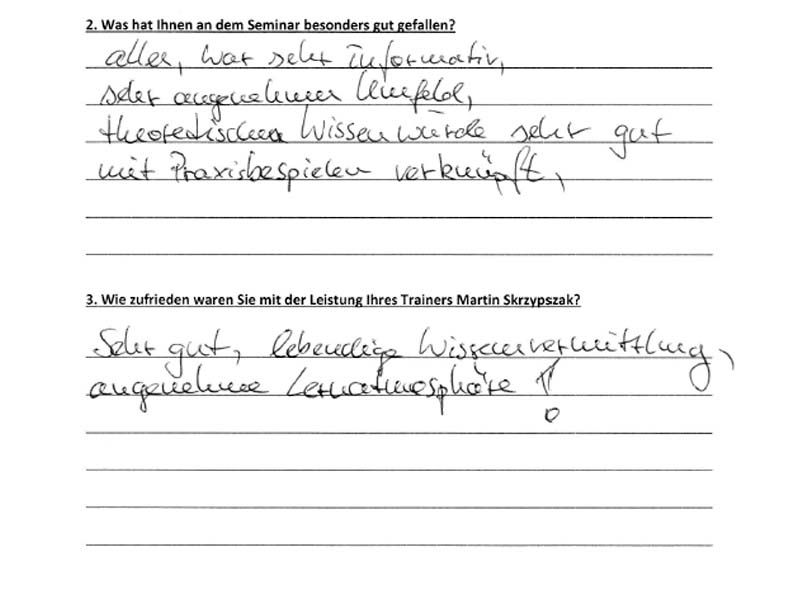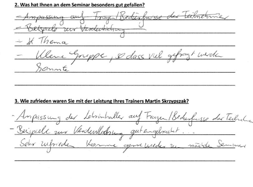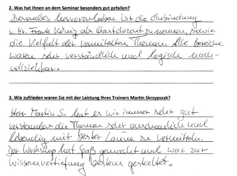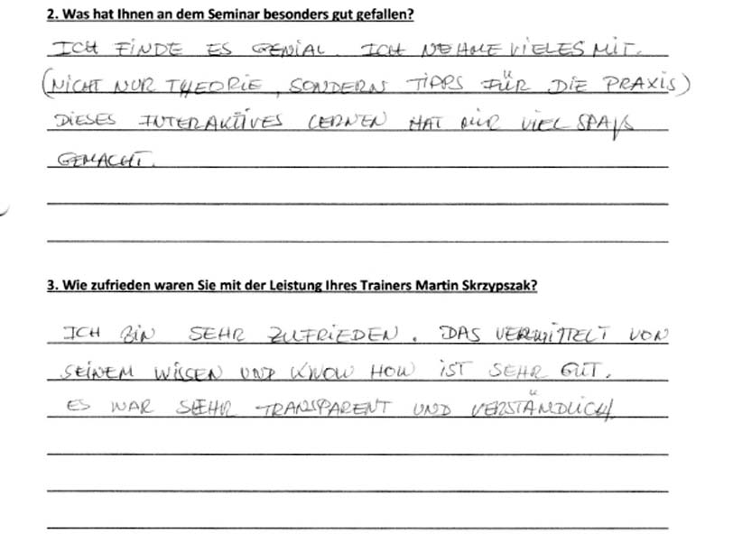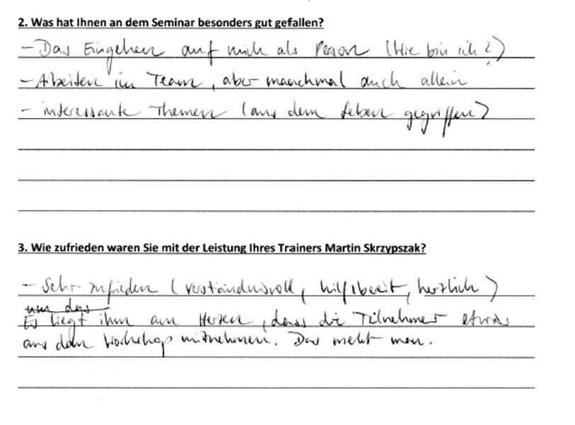 Wie sich eine Weiterbildung mit uns anfühlt? Wir ersparen Dir blumige Texte und geben Dir stattdessen Einblicke in echte Teilnehmerstimmen & Feedbacks.