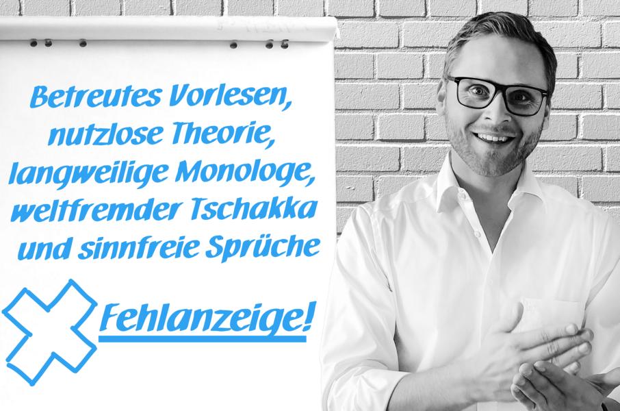 Wenn Du einen Workshop suchst, bei dem Dir ein „Chaka-Chaka-Guru“ Vertriebsweisheiten und nutzlose Theorie von der großen Bühne zuwirft – dann wird das nichts mit uns!