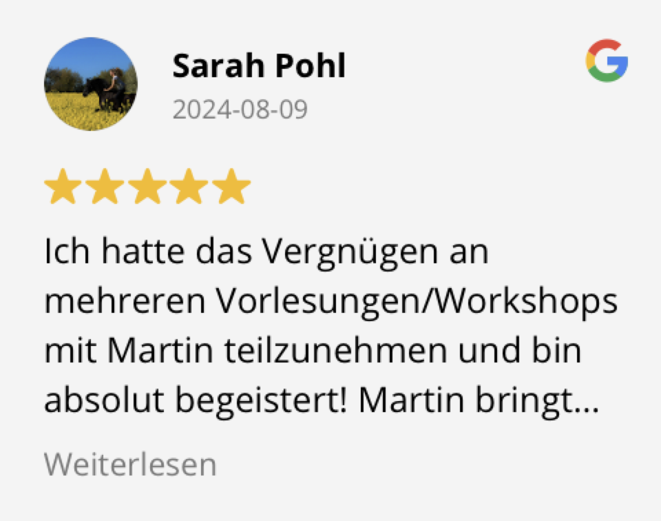 Spannendes Wissen, praxiserprobte Werkzeuge und sofort anwendbare Psychologie für mehr Sicherheit und Erfolg im Berufsalltag. Workshop- & Webinarangebote ansehen ...Unser Headcoach - 3 x 3 Gründe für MartinUngeschminkt: Kundenstimmen & Feedback