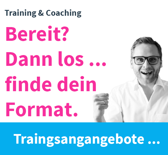 Wenn du einen Trainer suchst, der dir „Chaka-Chaka“ – Weisheiten und nutzlose Theorie von der großen Bühne zuwirft – dann wird das nichts mit uns! Suchst du hingegen einen authentischen und menschennahen Trainer und Coach, der Impulse setzt, deine Denkprozesse anregt, moderne und innovative Praxiswerkzeuge auf deine individuellen Bedürfnisse anpasst, dich in deiner Authentizität bestärkt und zudem mit spannenden Lernspielen und Selbstversuchen deine versteckten Potentiale freisetzt … dann bist du hier genau richtig!