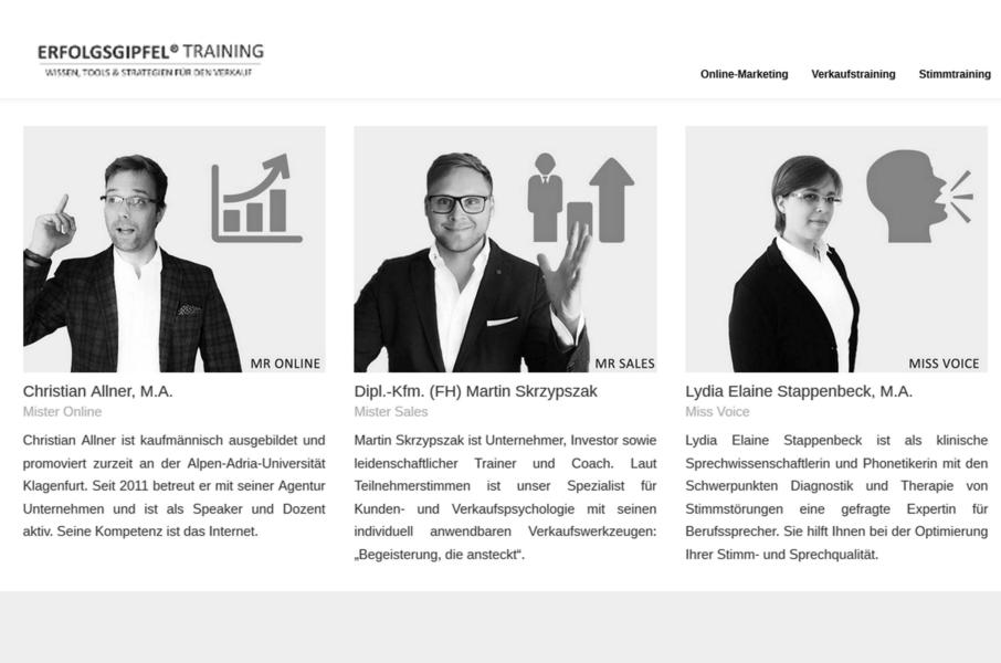 Unter der eingetragenen Eigenmarke „Erfolgsgipfel®“ vereint Martin erfahrene Trainer und kombiniert verschiedene Experten und Themen zu individuellen Trainingsangeboten.
